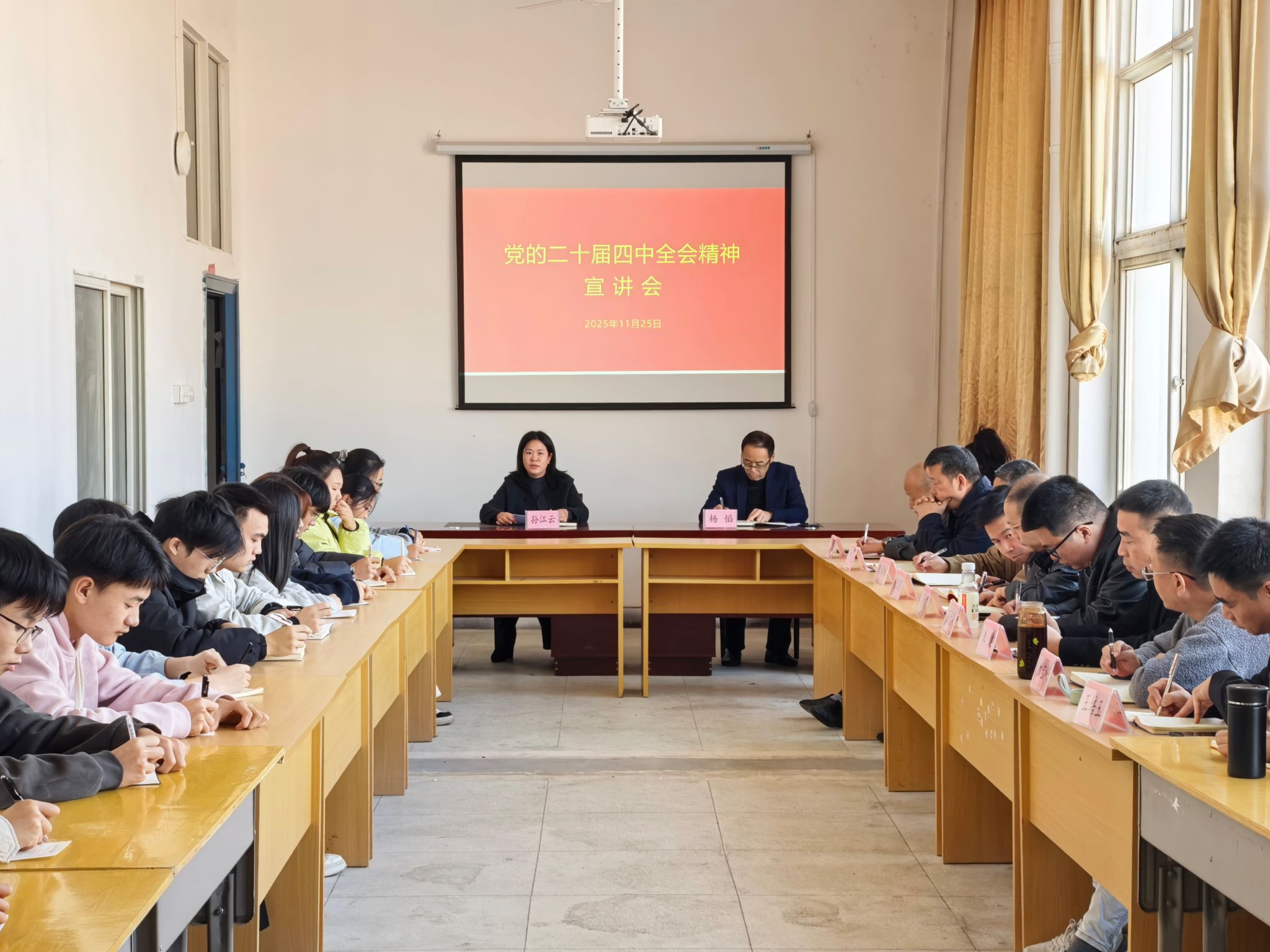 11月25日下午,学校党委副书记、校长孙江云带队赴青山湖校区,面向师生代表宣讲党的二十届四中全会精神,并聚焦教学管理、基础设施、后勤服务等师生关切问题,深入教学楼、学生宿舍等场所开展实地调研。党委委员、副校长杨慆及各二级学院党总支书记等共同参加。在宣讲会上,孙江云系统阐释了党的二十届四中全会的重大意义、核心要义与实践要求,结合中国式现代化的内涵与学校高质量发展目标,从理论逻辑、实施路径和落地见效三个方面,...