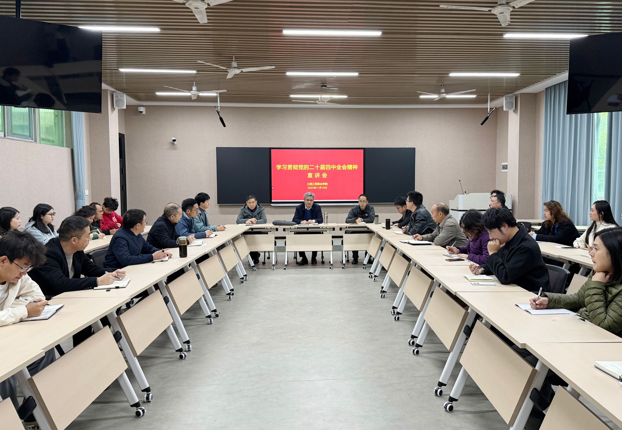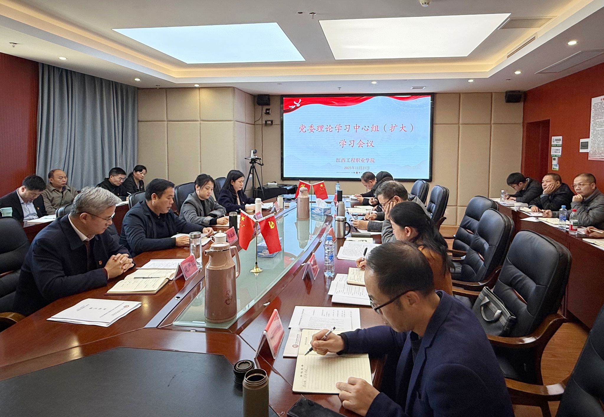11月21日上午,学校召开2025年党委理论学习中心组第十二次学习(扩大)会议,专题学习贯彻党的二十届四中全会精神。江西建设职业技术学院党委委员、副院长李淑林,党委宣传部负责人罗瑶列席会议。学校党委书记花严红主持会议。会议邀请南昌大学中国特色社会主义理论体系研究中心主任胡伯项教授以《夯实基础、全面发力,在接续奋斗中确保基本实现社会主义现代化取得决定性进展》为题作专题授课。胡伯项在授课中围绕深入学习宣传贯彻党的二十届四中全会精神,...